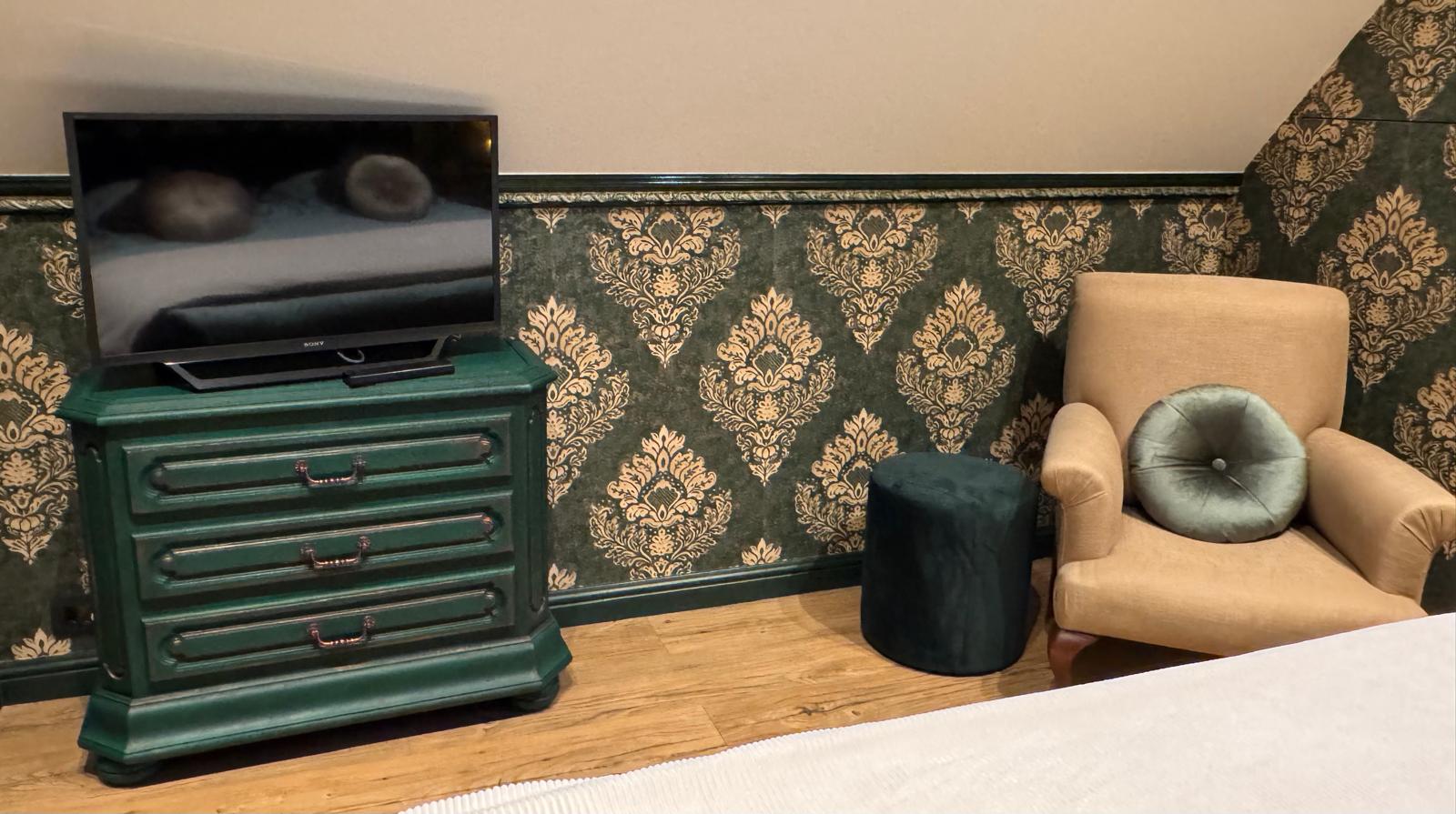met gedeelde badkamer met douche, toiletartikelen, haardroger en toilet, geluidloze airco en flat-screen.