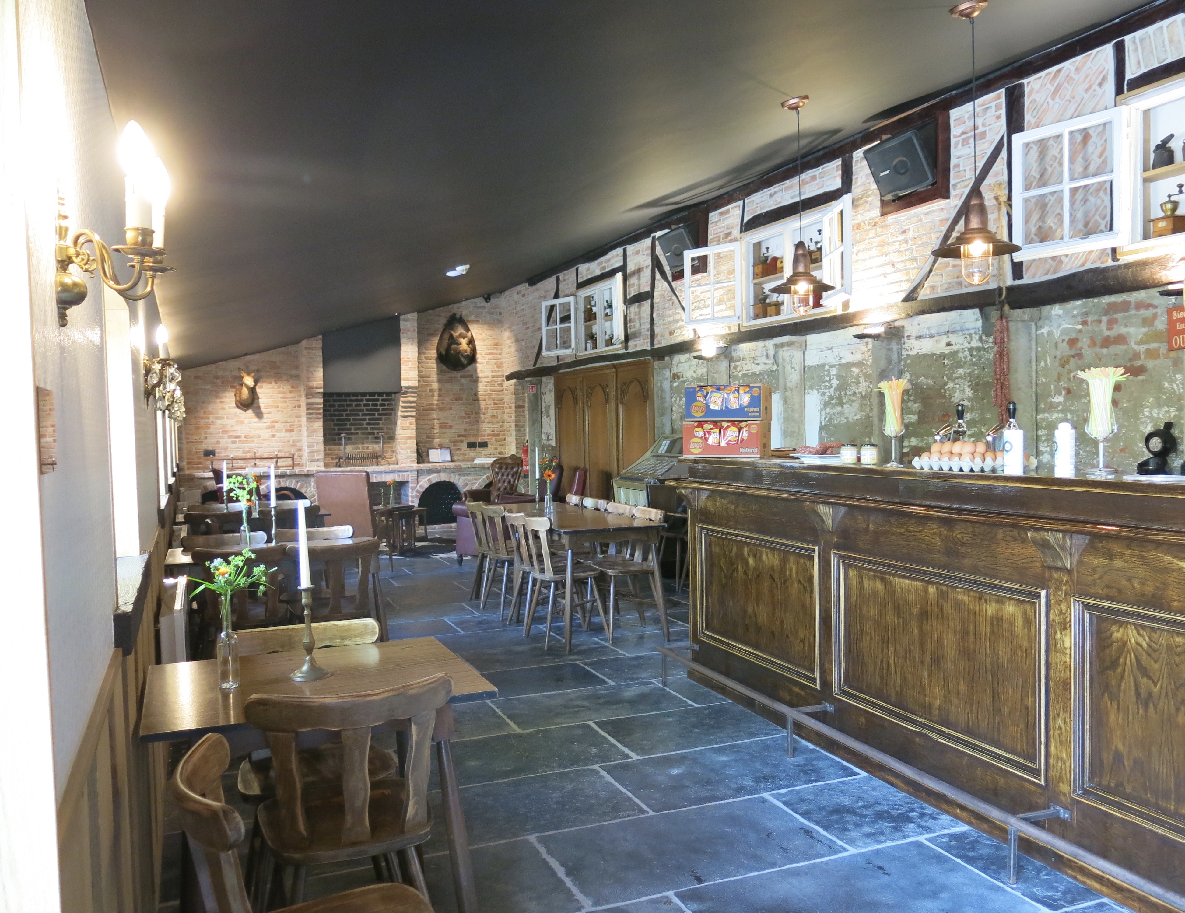 Onze event-zaal heeft met een grote bar, tapinstallatie en frigo's onder de bar en alle sanitaire voorzieningen, een capaciteit van 80 personen zittend of 100 personen staand.Een grote meerwaarde is het terras en de tuin die U uiteraard kunt gebruiken bij mooi weer! We hebben voldoende tafels, stoelen, loungesets en parasols ter beschikking.De zaal is (optioneel) voorzien van een keuken met een grote koelcel, vaatwas, kookplaat en oven, alsook een percolator, borden en bestek.