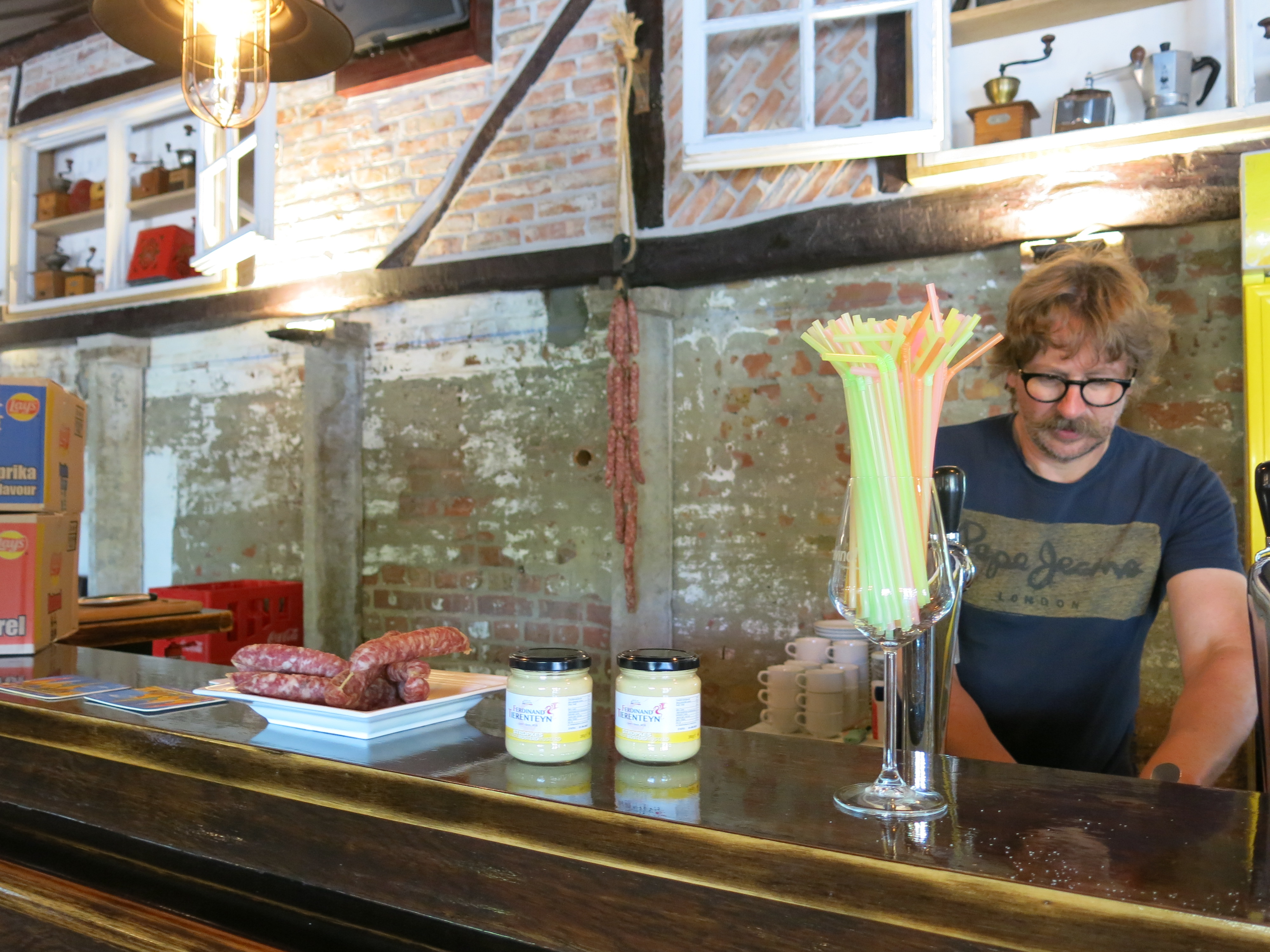 Een bar met 2 taps (altijd feest!) - Koelkasten onder de bar - Tafels, stoelen en zetels -