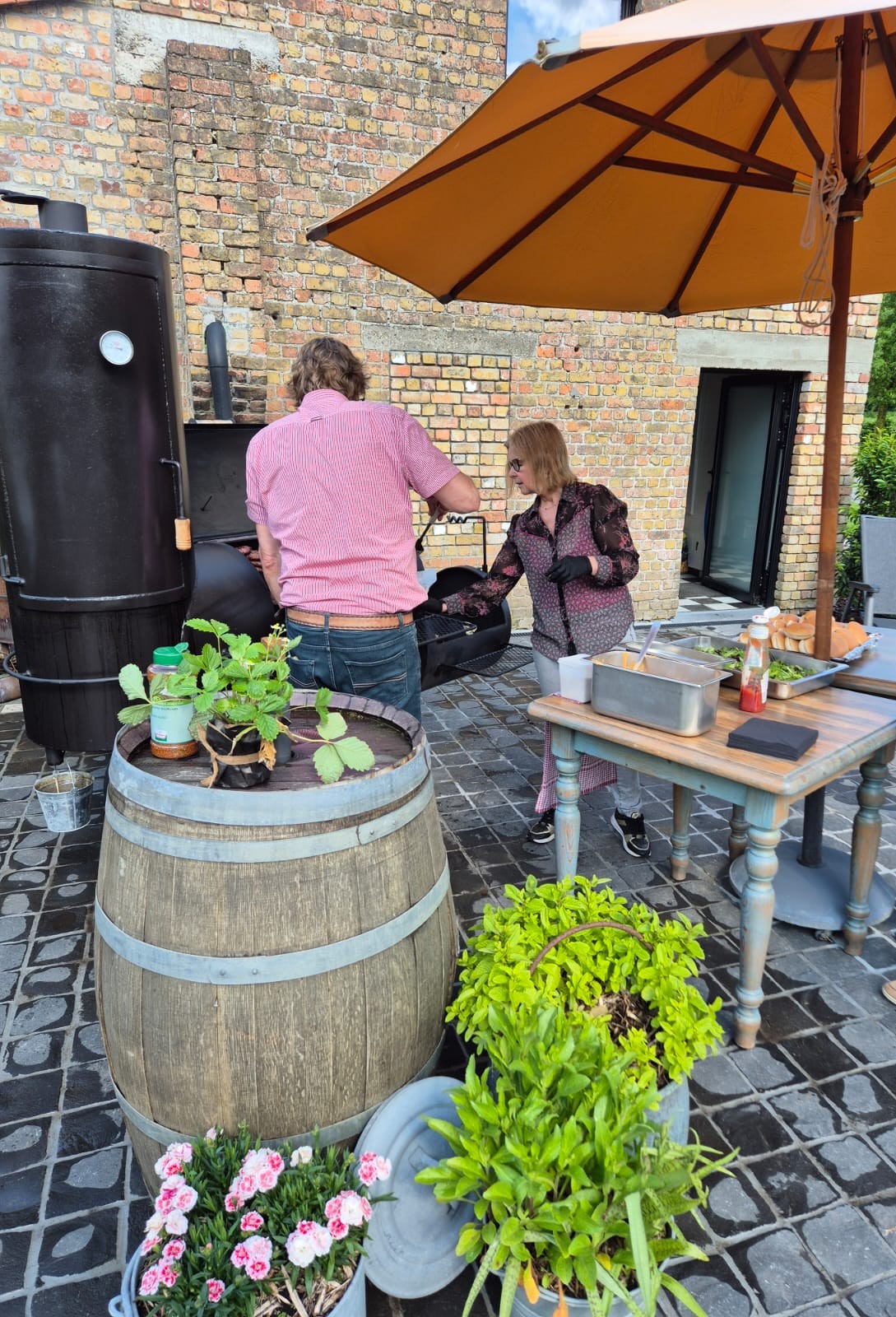 Op zonnige of warme dagen serveren we u het ontbijt( indien gewenst ) op ons ruime terras ……